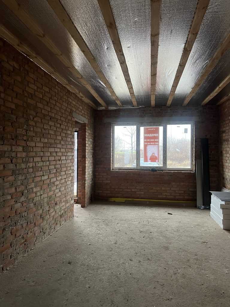 Площа 60 м²: дві кімнати, простора кухня, прихожа, котельня, санвузол і горище, яке легко перетворити на зберігання або додатковий простір.