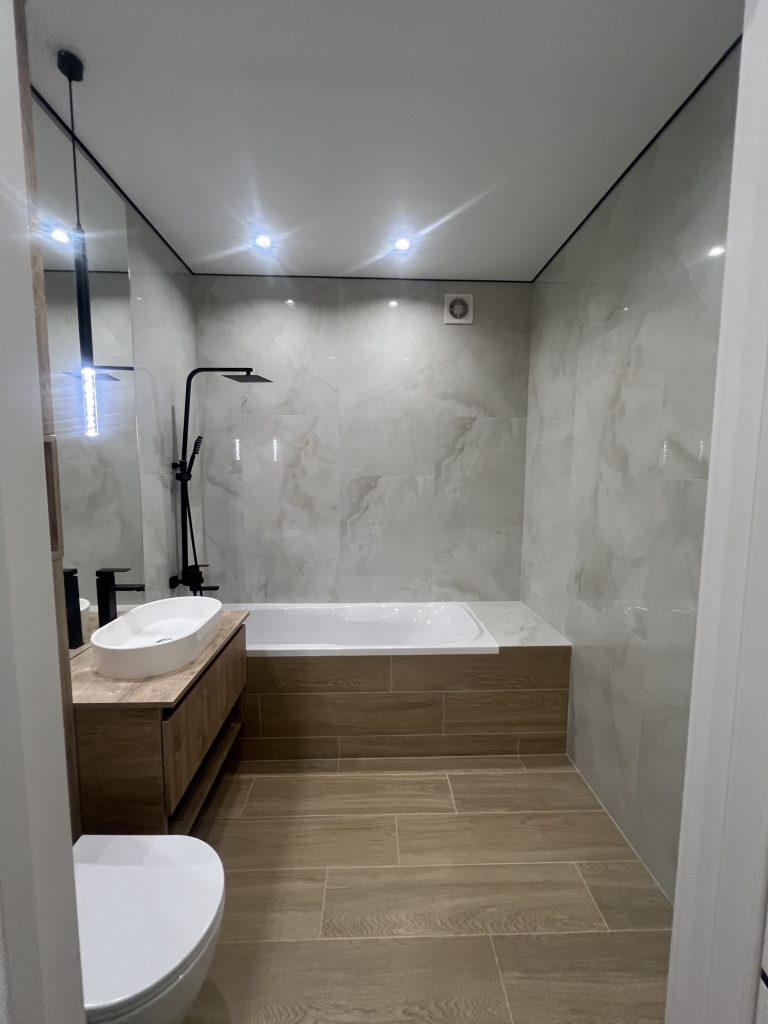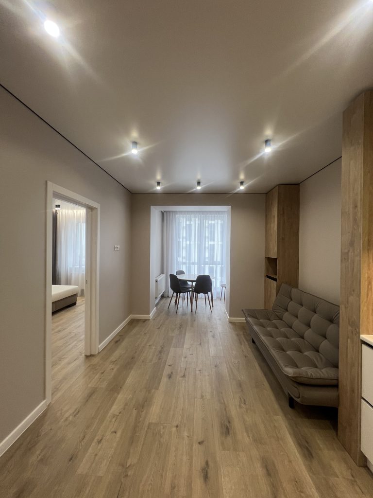Квартира повністю укомплектована меблями та технікою: холодильник, варильна поверхня, духова шафа, посудомийна машина — усе залишається новим власникам.
